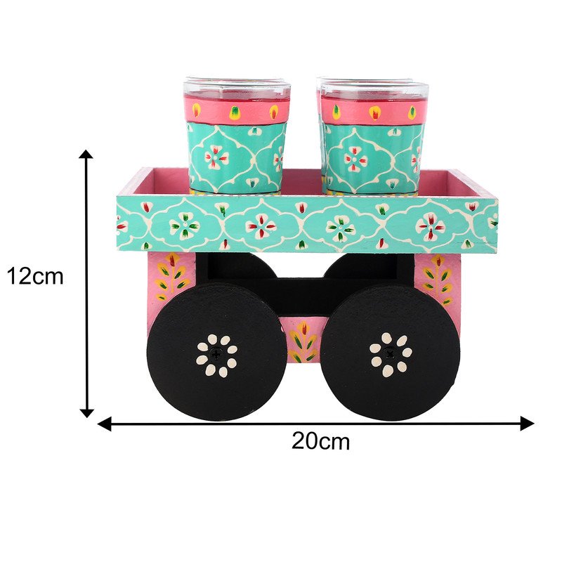 Handmade Kettle with Four Glasses and Wooden Kart “Are you hosting a high tea party? This unique and exceptional teapot is not to be missed! There are scones on the table. Not any longer! Every visitor to the room is envious of this exquisite hand-painted colorful teapot from Ship Lam Creations.